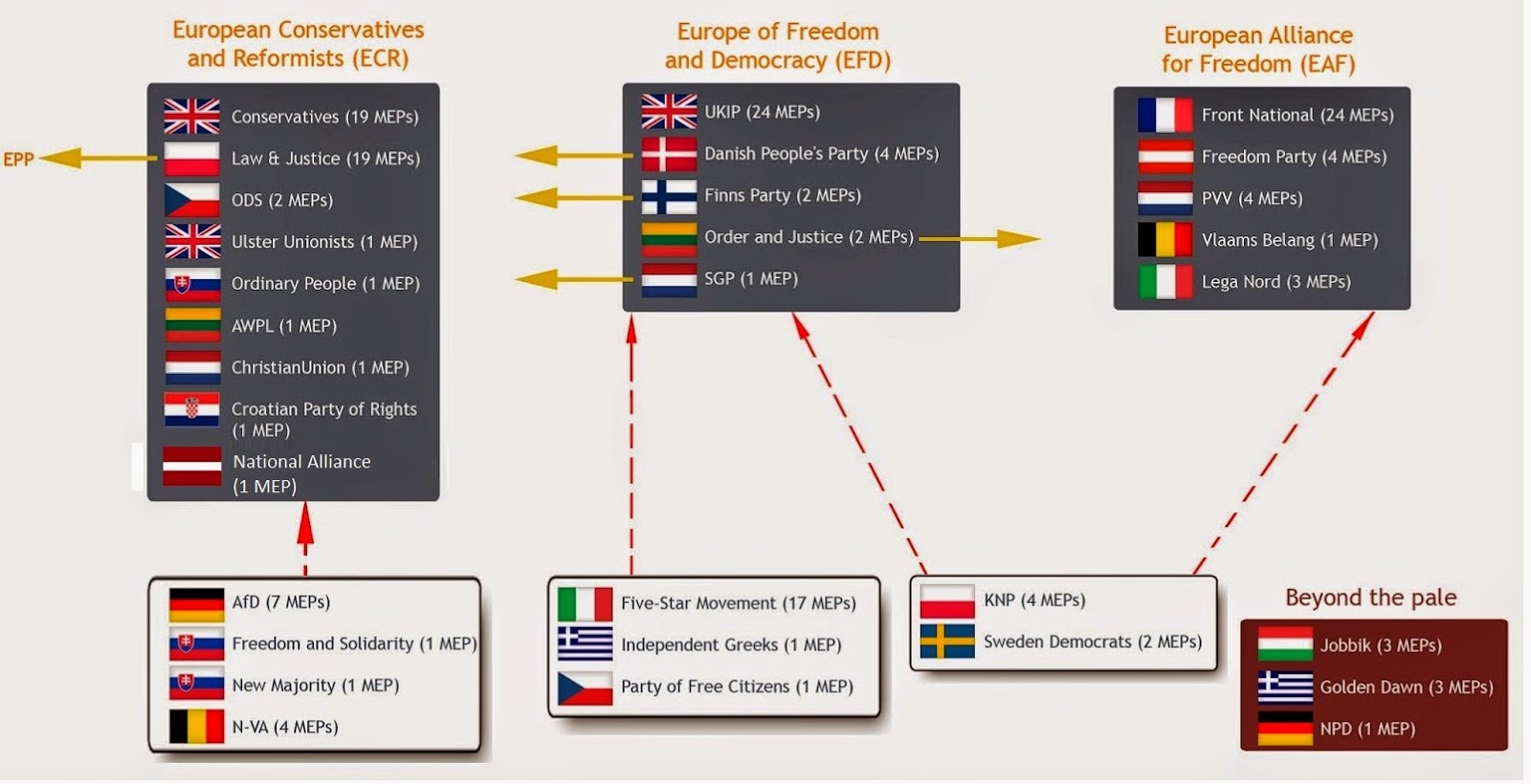Possible EU-level euroskeptic alliances (as of May 2014).  (See original here.)