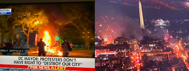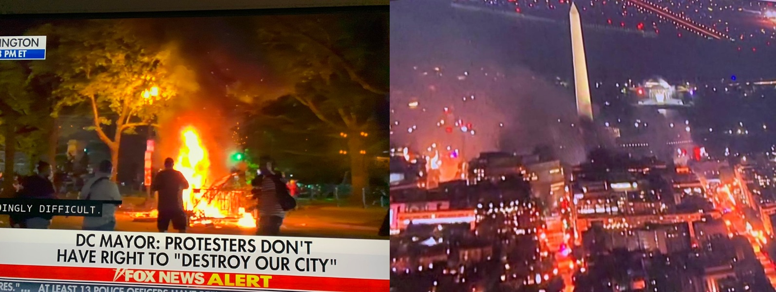 An area of a few blocks around the White House was thick with smoke. A fire was started in the basement of the parish house of St John’s church, which since 1816 has been the “Church of the Presidents”. Every president from James Madison on has worshipped there. The DC fire service got there quickly and are reported to have put it out.Around the corner, however, a few protesters smashed the plate glass window front of the AFL-CIO Union federation headquarters and someone started a fire in the lobby. A couple of bystanders tried to dissuade them, shouting that the “unions are on our side” but to no avail. Fifty yards away, on I Street, a car was burning and a group of six young men were running down the street and smashing the windows of every car they came across with metal baseball bats.