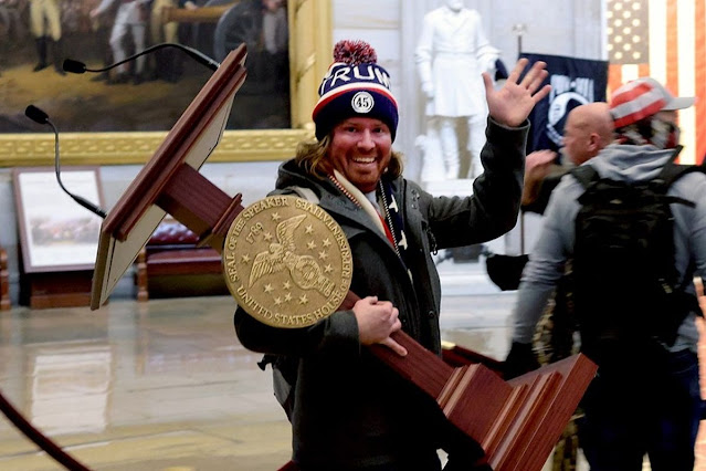 Yes, the main “horrific event” was a Trump fan getting needlessly shot down and some guy running away with the Speaker’s lectern and smiling.