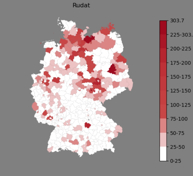 “The surname Rudat is derived from local language terms for reddish-brown or copper, as well as references to red hair or related professions like iron smelters. Several sources confirm that Rudat is one of the most frequent Prussian-Lithuanian surnames in Germany and point to its origin in East Prussia.”