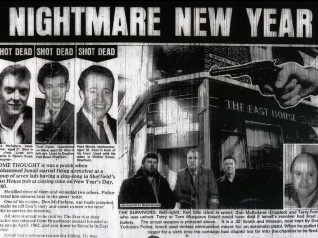 On New Year’s Day 1960, three men were shot and killed and two wounded in a mass shooting at the East House public house in Sheffield, England. The killer was Mohamed Ismail, [an unemployed Somali labourer] from the colony of British Somaliland. Ismail had earlier expressed a desire to end his life but thought that suicide was not an option due to his religious beliefs. He committed the shooting in the hope that he would be arrested and sentenced to death by a British court.
