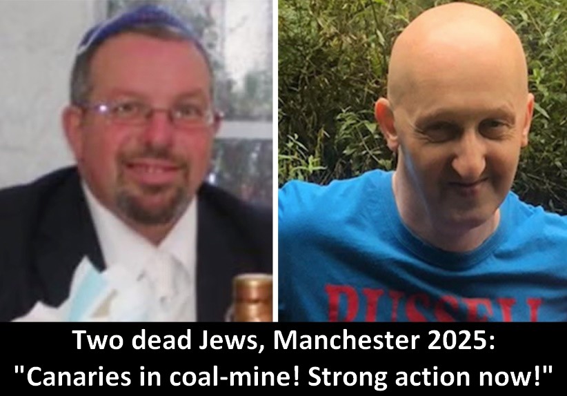 Two Dead Jews, Manchester 2025: “Jews are the canaries in the coal-mine! Strong action now!”