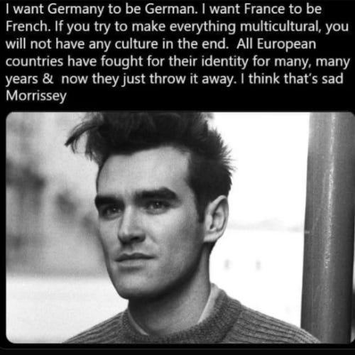 Of course, it is not at all the case that the AfD or other right-wing parties and movements, regardless of how moderate they are in fact, are actually misanthropic or contemptuous of humanity, at least not all of humanity. At the very least, AfD supporters and those who demand sensible immigration policy, protection of borders, as well as remigration are not contemptuous of all of humanity at all, as they love their nation and their people, and seek, desire, and demand policies that are conducive to the preservation and furtherance of their future posterity. Morrissey, former frontman of the Smiths, and others have noted how those who truly respect both humanity and diversity in humanity understand why European nation states must remain homogenous, that the multiracial vision of globalism seeks to destroy those differences. Leonie Plaar on the other hand is contemptuous of one segment of humanity, that is Germans in particular, first and foremost her own father, and Germans and white Europeans writ large, especially men.