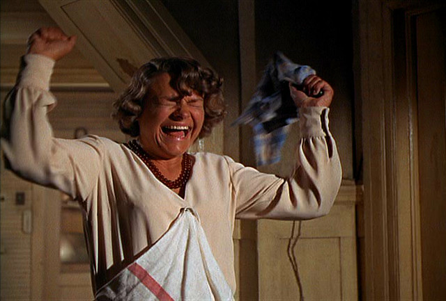 Estelle Parsons won the Academic Award for Best Supporting Actress for her portrayal of Blanche and deserved it. Here she is in the movie in a characteristic pose—she’s pitched in the movie as being given to hystrionics.