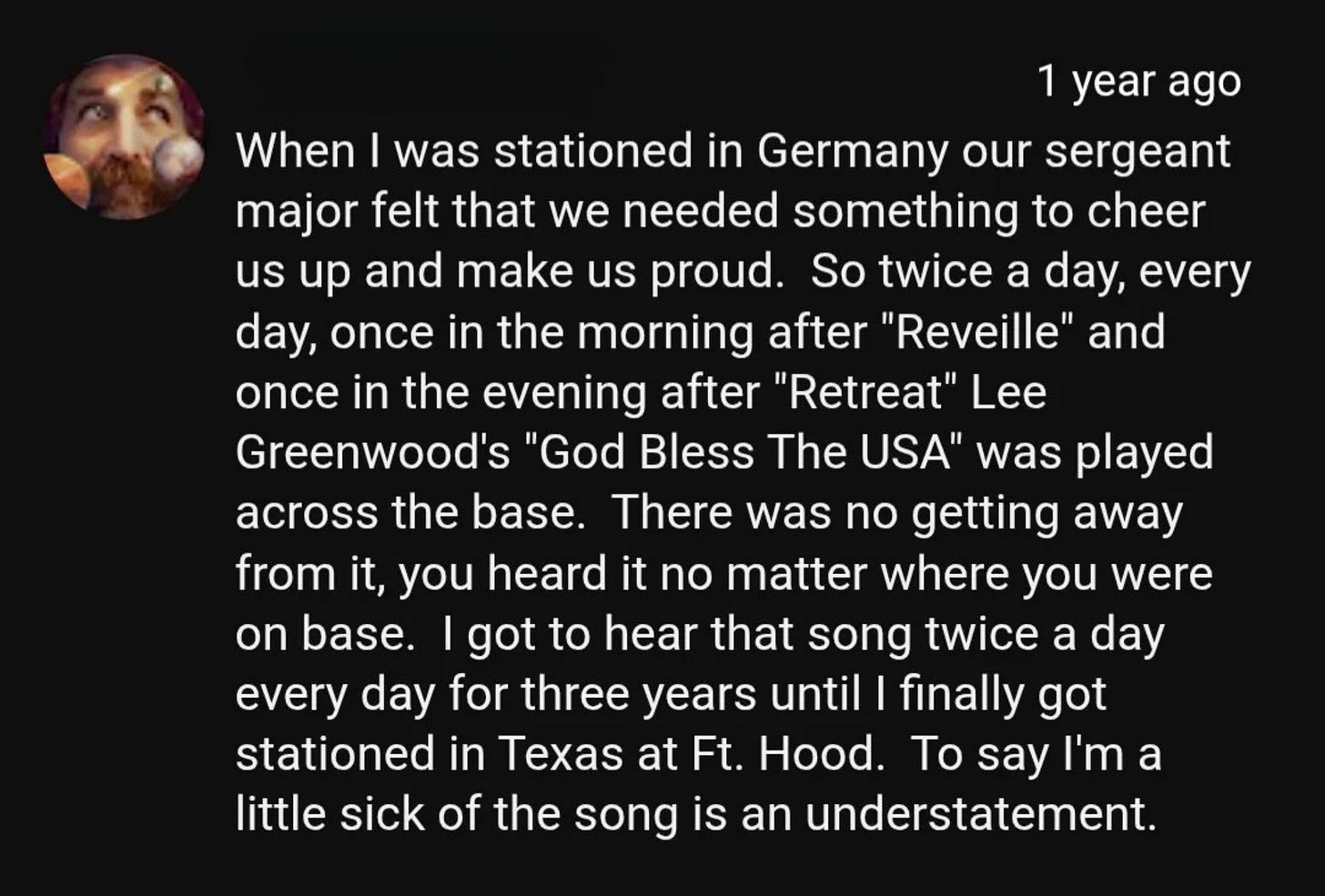 Notably, the song has been adopted by the Department of Defense (now the Department of War) since 9/11. It is invariably played at veterans’ functions as well as official functions for various entities in the armed forces. The Internet is awash with various accounts of the song’s prominence in military life. Indeed, the song is often played at the conclusion of basic training, the completion of which marks a recruit’s graduation as a full-fledged service member. By selecting this song, the United States military psychologically conditions those who serve in its ranks, linking both the song and its lyrical content with the positive emotional experiences associated with these and other events associated with military service.