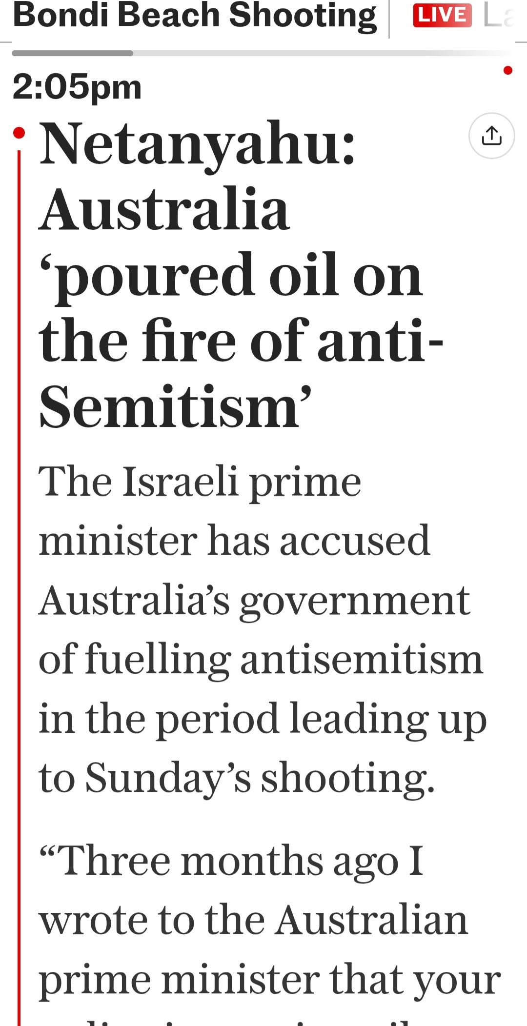 But, before the dead are even cold, the blood-stained thug Netanyahu leapt into action to exploit the killings. Rather than sending his condolences to the families of the dead and to a shocked Australia, he launched into a cynical attack on the Australian government and screamed about the “antisemitism” of recongising the right of Palestinians to a state of their own.