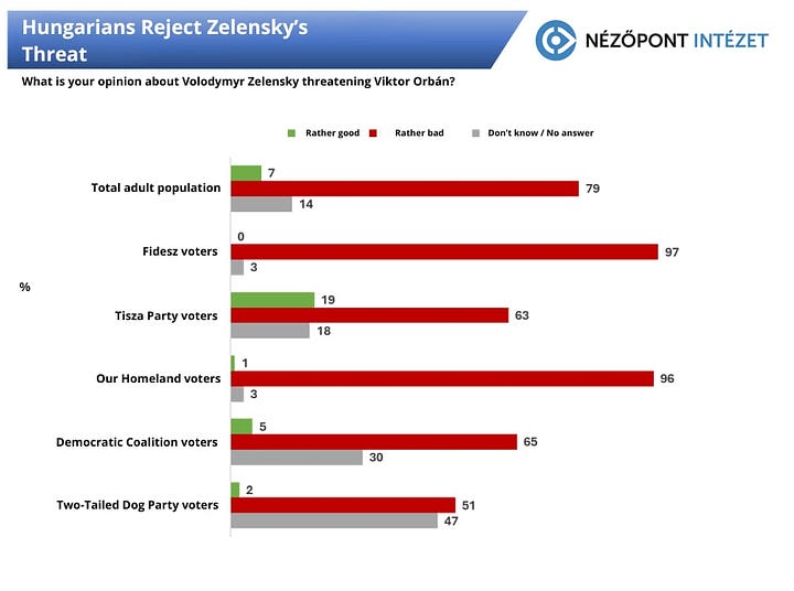 It is no coincidence that national unity is strengthening. More than 1.5 million people have already returned the National Consultation survey. According to research by the Nézőpont Institute, a decisive majority of Hungarians support the prime minister and reject the Ukrainian president’s threats: 79 percent of respondents consider them unacceptable. Among Fidesz voters, this position is nearly unanimous, but even within the opposition camp, those rejecting such threats are in the majority.
