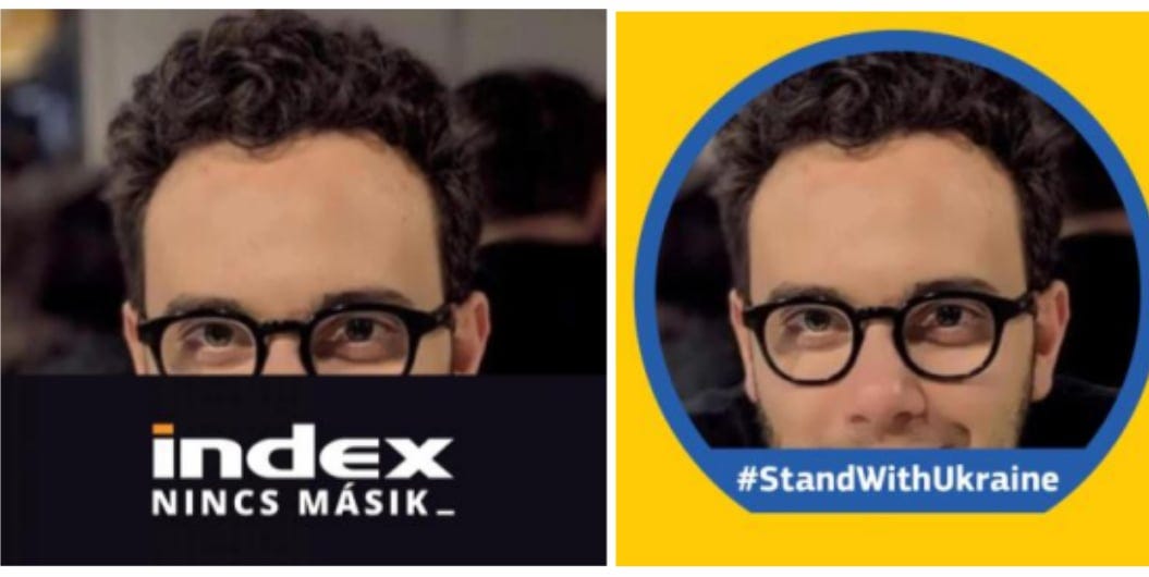 Nawfal also pointed out that a regional Meta executive has publicly aligned with mainstream Brussels positions, including pro-Ukraine messaging and criticism of the Hungarian government. According to Philip Pilkington and Joey Mannarino, this individual is likely Oskar Braszczyński, whose Facebook profile features visual elements associated with pro-Ukraine and anti-Orbán symbolism—as well as imagery opposing Poland’s conservative Law and Justice party (PiS). Here he is: