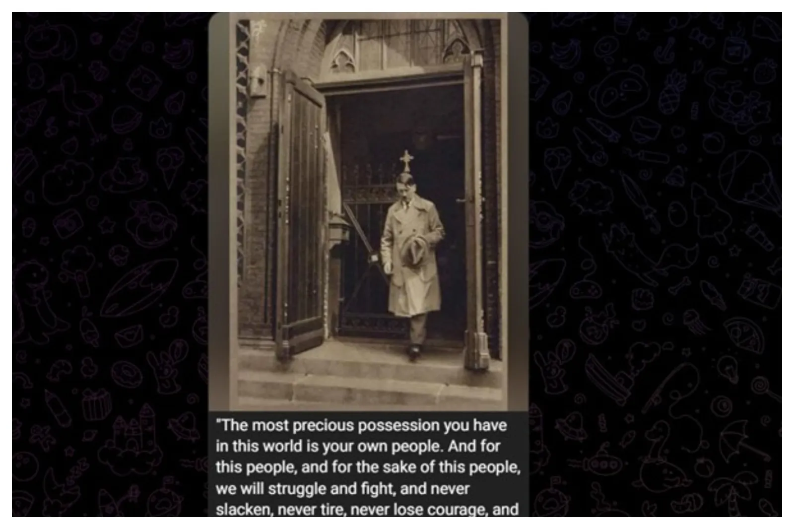 On Monday, the Ohio Nationalist Network posted a photo of Adolf Hitler on its Telegram page alongside a quote from a speech by the Nazi leader advocating “struggle and fight.” The image was viewed 196 times and 30 people sent fire emoji reactions in an apparent endorsement of the post. Newsweek reached out to the Ohio Nationalist Network by Telegram.